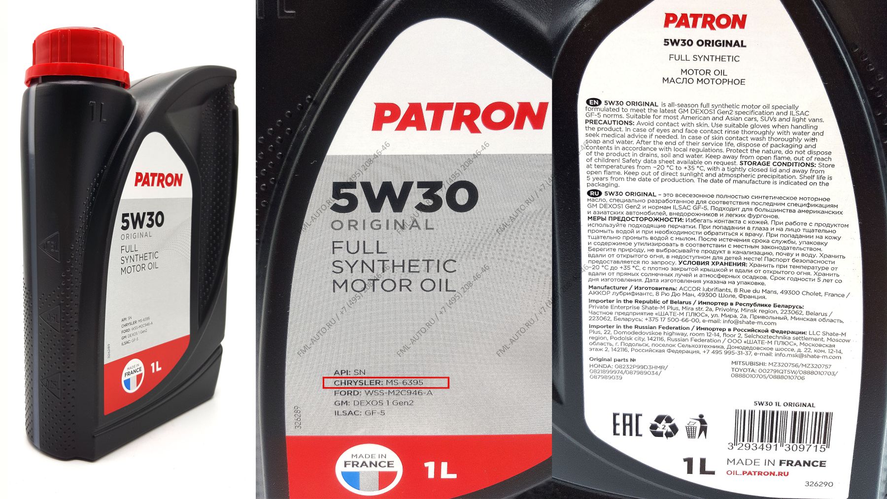 Моторное масло Patron 5W30 (для Dodge, Chrysler, Jeep, RAM, Volkswagen, FIAT, Газ) (Моторное масло Patron 5W30)